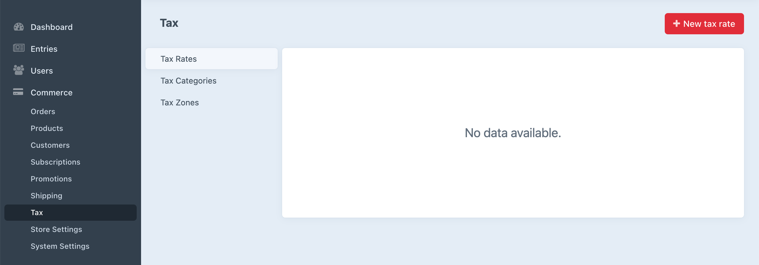 See the Tax page to understand how Commerce uses tax categories, zones, and rates.
